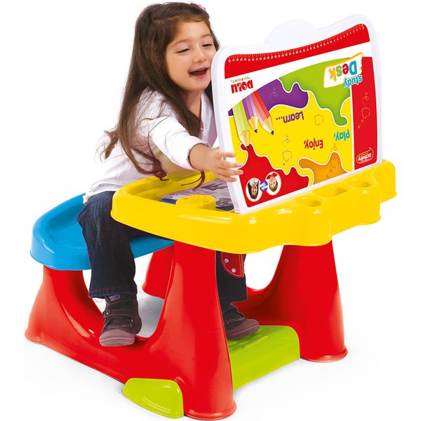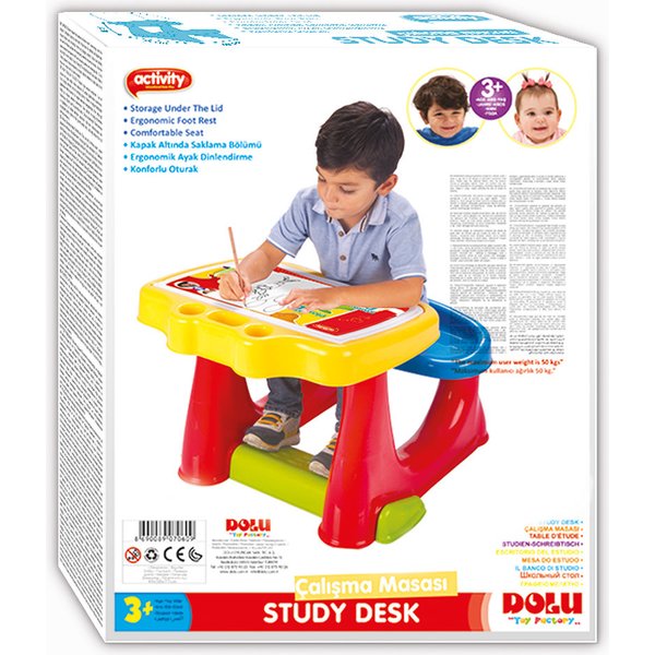 Maluch siedzieć będzie na wygodnej ławeczce przy biurku i tworzyć swoje pierwsze dzieła artystyczne. Otwierany blat stolika kryje schowek, który pozwoli na przechowanie długopisów, flamastrów, zeszytów czy innych akcesoriów pomoże to w zaoszczędzeniu miejsca. Stoliczek został wyposażony ergonomiczną podstawkę na stopy dziecka, dzięki czemu podczas siedzenia nóżki w pełni odpoczywają.