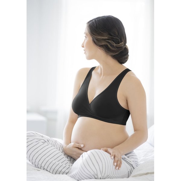 Biustonosz do karmienia na noc od marki Medela, który posiada kopertowe ułożenie miseczek. To pozwoli na szybkie dostanie się do piersi, gdy przyjdzie pora na nocne karmienie. Nie posiada on szwów, ani haftek, a to gwarantuje pełen komfort podczas snu, który jest niezwykle ważny dla młodej mamy. Jest on niezwykle rozciągliwy, więc idealnie dopasuje się do kształtu zmieniającego się ciała. Jednak nie na tym jego rola się kończy! Świetnie sprawdzi się również jako stanik do ćwiczeń.