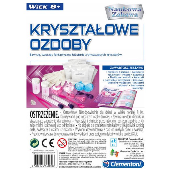 Laboratorium, w którym można tworzyć piękne kryształowe klejnoty to marzenie każdej dziewczynki. Razem z przyjaciółkami podczas zabawy w chemika stwórz wymarzone ozdoby. Podręcznik dołączony do zestawu pomoże w różnych etapach zabawy z solą.