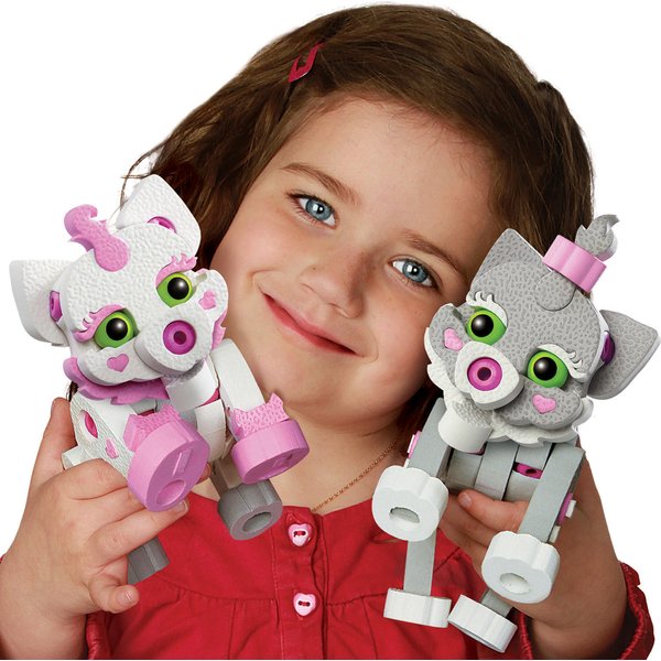 Przenieś się do świata domowych zwierzątek i zbuduj małe kotki! Podczas składania pomoże Ci pięknie ilustrowana instrukcja, która krok po kroku pokaże jak zwierzaczki. Dzięki zaokrąglonym łącznikom postacie posiadają ruchome kończyny co jeszcze bardziej urozmaici zabawę.