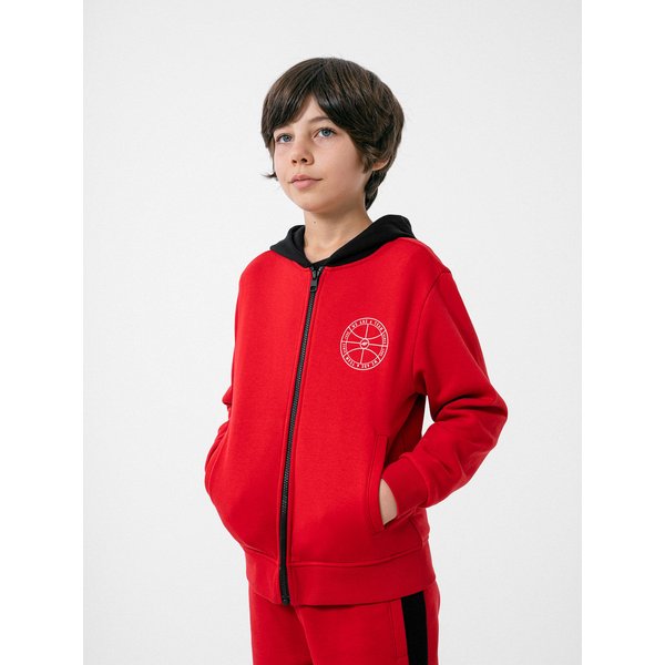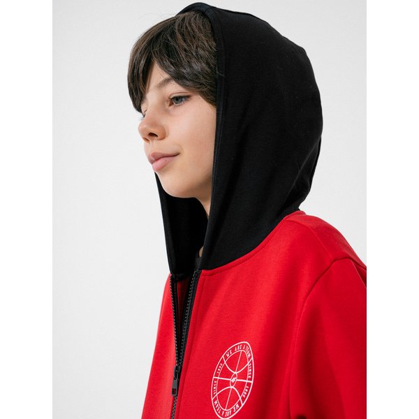Materiał jest miły w dotyku, co wpływa pozytywnie na komfort noszenia. Wysoka zawartość bawełny sprawia, że tkanina pozwala skórze swobodnie oddychać, ograniczając brzydkie zapachy. Wysoka gramatura materiału sprawia, że bluza jest świetnym wyborem na chłodniejsze dni. Czesane wnętrze wpływa pozytywnie na komfort cieplny. Bluza jest zapinana na praktyczny dla dzieci i młodzieży zamek. Grafika dodaje całości sportowego charakteru.