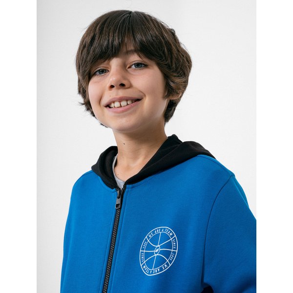 Materiał jest miły w dotyku, co wpływa pozytywnie na komfort noszenia. Wysoka zawartość bawełny sprawia, że tkanina pozwala skórze swobodnie oddychać, ograniczając brzydkie zapachy. Wysoka gramatura materiału sprawia, że bluza jest świetnym wyborem na chłodniejsze dni. Czesane wnętrze wpływa pozytywnie na komfort cieplny. Bluza jest zapinana na praktyczny dla dzieci i młodzieży zamek. Grafika dodaje całości sportowego charakteru.