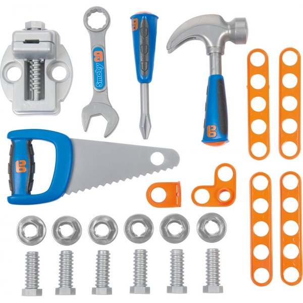 W zestawie znajdziesz wszystkie niezbędne narzędzia. Jest tu, imadło, piła, klucz, młotek i wiele więcej, razem ponad 23 akcesoriów! Bierz się do pracy i rozpocznij majsterkowanie w stylu Boba Budowniczego.