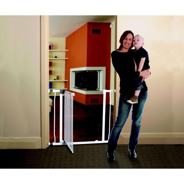 Metalowa bramka jest bezpieczna dla ścian i futryn drzwi. Łatwy montaż i możliwość regulacji jej szerokości i poszerzenia jej o dodatkowe elementy (do kupienia osobno) to kolejne zalety tego modelu. Bramkę otworzysz się w obu kierunkach za pomocą jednej ręki. Podczas otwierania możesz także wykorzystać funkcję blokady.