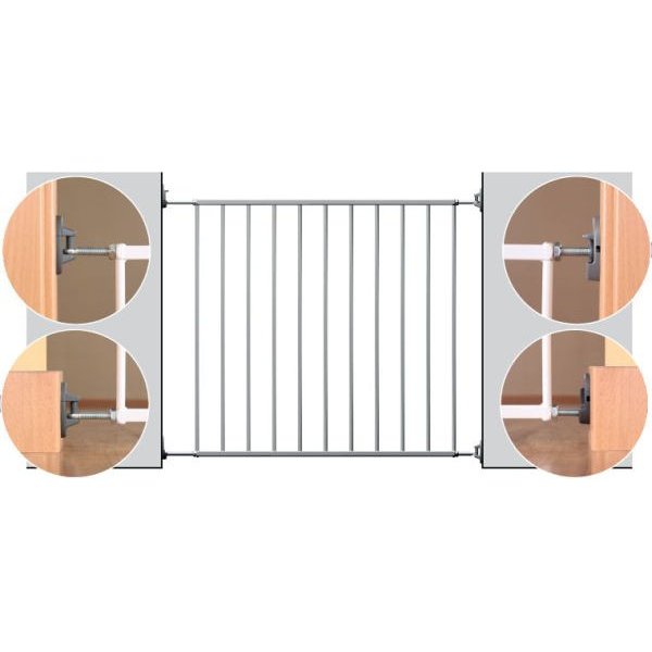 Bramka ta nie posiada progu, dzięki czemu bramkę można zupełnie bezpiecznie zamocować na szczycie schodów bez ryzyka potknięcia się o próg.