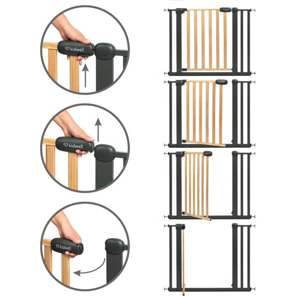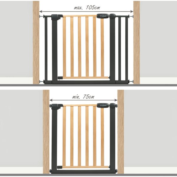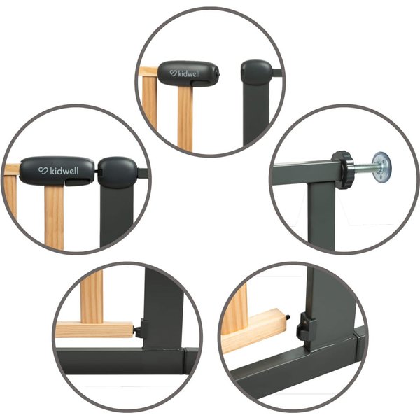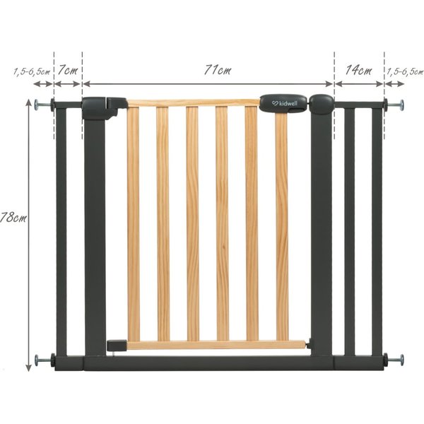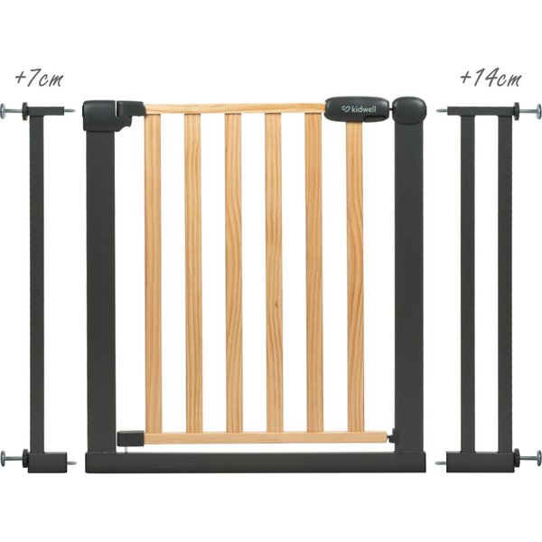 Bramka zabezpieczająca Trasti Kidwell to rozwiązanie, które zapewnia pełne bezpieczeństwo dziecka w domu. Montaż bez użycia narzędzi sprawia, że bramka jest stabilna i łatwa do zamontowania. Wykonana z naturalnego drewna sosnowego i malowanej proszkowo stali, łączy w sobie funkcjonalność i estetykę. Funkcja AutoClose automatycznie zamyka bramkę, a podwójne zabezpieczenie przed otwarciem zapewnia dodatkowe bezpieczeństwo. Bramka jest regulowana i posiada rozszerzenia, dzięki którym można ją dostosować do różnych szerokości. Nowoczesny i elegancki design bramki sprawia, że doskonale wpasuje się w każde wnętrze. To solidne i estetyczne zabezpieczenie dla Twojego dziecka.