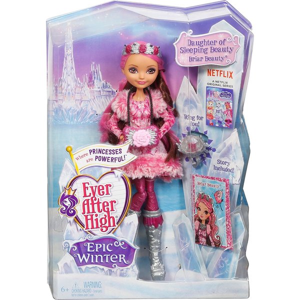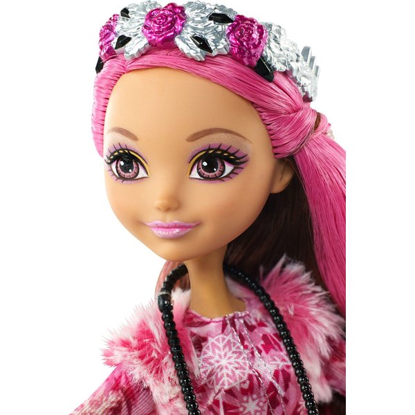 Briar Beauty - córka Śpiącej Królewny wygląda uroczo w różowej, futerkowej sukience. Jej strój urozmaica mufka na ręce z motywem kwiatu. Magiczny strój oraz dodatki wyjątkowy charakter tej bohaterce. W zestawie lalka ma zimową mufkę, a na głowie ma piękną, kwiatową tiarę!