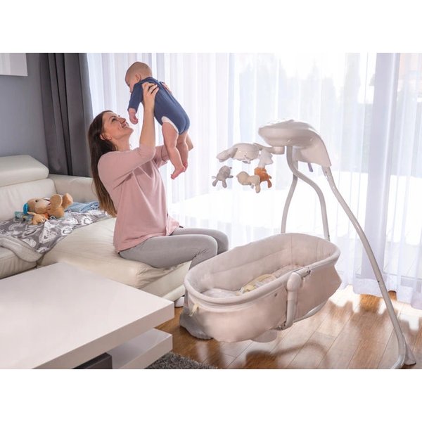 Produkt posiada automatyczną karuzelę, w skład której wchodzą 3 pluszowe misie i 3 pluszowe chmurki. Dodatek wpływa pozytywnie na rozwój kreatywności maluszka. Do bujaczka dołączony został projektor, który emituje delikatne światło w 7 kolorach.