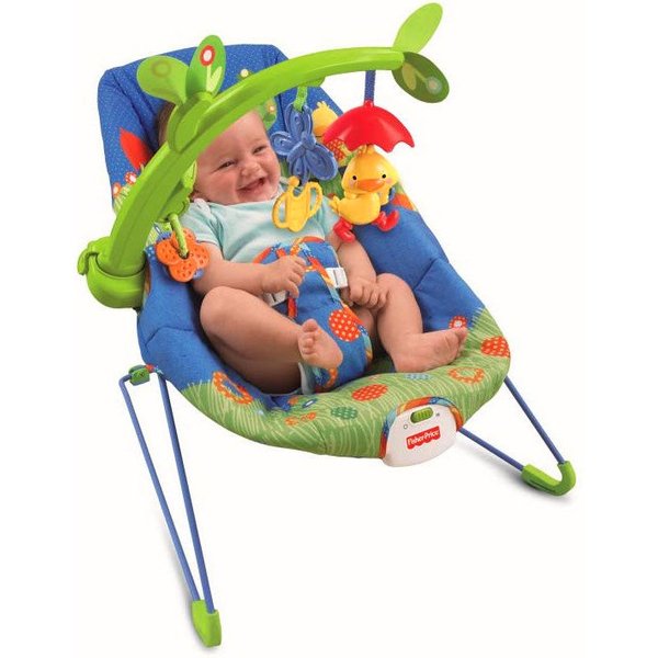 W bujaczku zastosowano nową konstrukcję z głębokim leżaczkiem, w którym dziecko czuje się przyjemnie otulone jak w kokonie. Wyjmowany pałąk z zabawkami ma kształt drzewka z miękkimi listkami. Z drzewka zwiesza się grająca kaczuszka, które nagradza aktywność dziecka zabawnymi melodyjkami. Dziecko może się też bawić wiszącym jabłuszkiem i odczepianymi zabawkami: grzechotką oraz gryzaczkiem. Każdy rodzic doceni funkcję kojących wibracji, które pomogą uspokoić lub uśpić dziecko. Podstawę bujaczka zabezpieczono przed ślizganiem, bezpieczeństwo zwiększa również 3-punktowe zapięcie. Leżaczek łatwo utrzymać w czystości, można je prać w pralce.