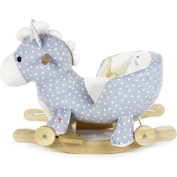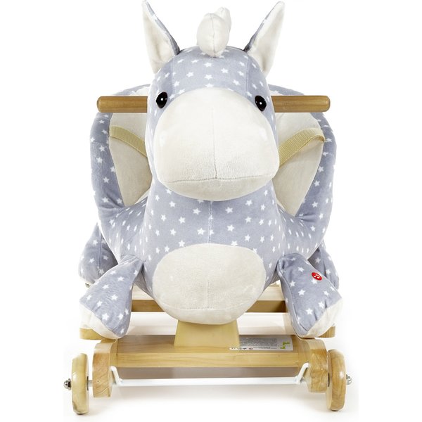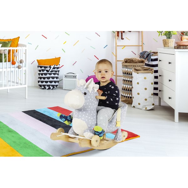 - zabawka 2 w 1 - posiada koła typowe dla jeździka oraz płozy do bujania, aby dziecko mogło samo zdecydować, na co ma ochotę, a dodatkowo śpiewa polskie piosenki,