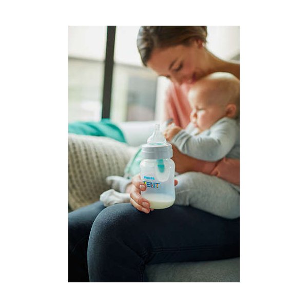 Spokojniejsze i szczęśliwsze dziecko, zwłaszcza w nocy z antykolkową butelką Philips Avent. Antykolkowa butelka Philips Avent - łatwiejsza w użyciu oraz myciu. Klinicznie potwierdzone rzadsze występowanie kolki u dziecka. Butelka znacznie zmniejsza częstotliwość występowania kolki i stanu rozdrażnienia u niemowląt, dzięki temu dziecko jest spokojniejsze, szczególnie w nocy. Teraz dodatkowo do butelki dołączona zostaje nakładka Air Free.