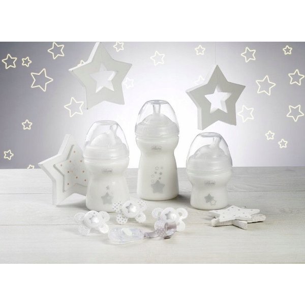 Butelka Chicco Natural Feeling jest to produkt, który podąża za rozwojem dziecka w najbardziej naturalny sposób. Podwójny system antykolkowy zapobiega połykaniu powietrza, dzięki czemu ryzyko wystąpienia kolki jest minimalne. Butelka posiada wydłużony, zaokrąglony smoczek, miękki cienki silikon oraz wgłębienia na podstawie smoczka co sprawia, iż picie z tej butelki przypominają odczucia, jak przy karmieniu piersią mamy.