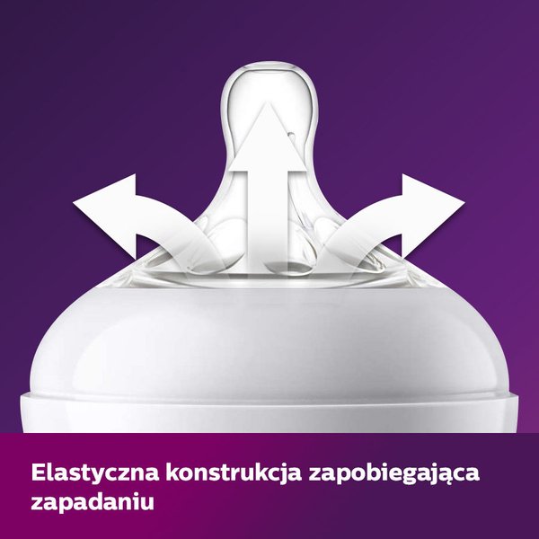 Nowa butelka od Philips Avent sprawia, że karmienie staje się bardziej naturalne dla Ciebie i dziecka. Smoczek jest wyposażony w innowacyjne płatki, które powodują, że przypomina on pierś - dzięki temu dziecko może przyssać się do niego w naturalny sposób. Ułatwia to łączenie karmienia piersią i butelką.