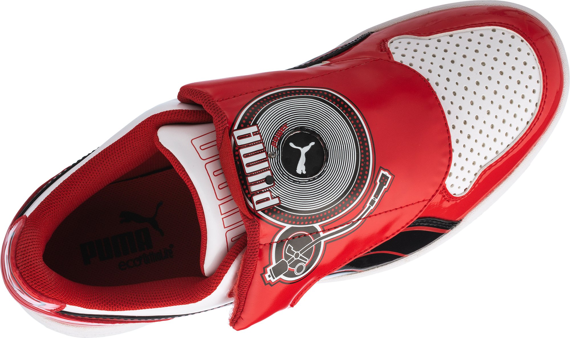 Buty DJ Lo to nowy projekt marki Puma, dla miłośników szalonych stylizacji inspirowanych muzyką. Komfortowa konstrukcja została połączona ze mini akumulatorem umieszczonym w przedniej klapie, który po włączeniu, przy każdym kroku wydaje dźwięk instrumentów perkusyjnych.