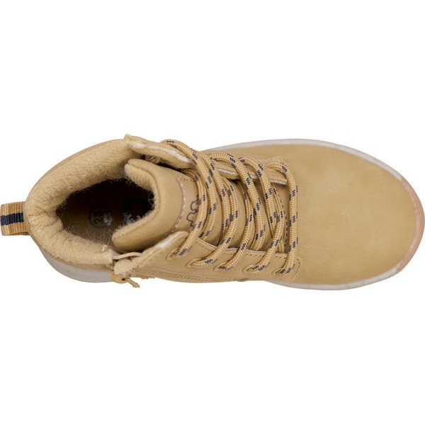 Cholewka butów została wykonana z elastycznej i łatwej w czyszczeniu skóry syntetycznej. Materiałowe wnętrze przyjemnie otula dziecięcą stopę, a wysoki profil stabilizuje kostkę w trakcie chodzenia i biegania. Komfortowa podeszwa środkowa amortyzuje stopę, a gumowa podeszwa zewnętrzna z antypoślizgowym bieżnikiem dba o bezpieczeństwo dziecka na śliskiej nawierzchni. Buty są bardzo wygodne w zakładaniu, ponieważ oprócz gwarantującego dobre dopasowanie do stopy sznurowania dziecko ma jeszcze do dyspozycji boczne zapięcie na zamek.