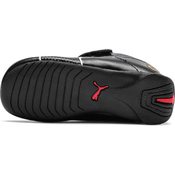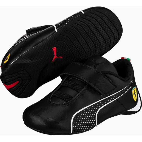 Dziecięce buty Scuderia Ferrari Future Cat Ultra marki Puma posiadają niską oraz wygodną konstrukcję. Cholewka ze skóry zapewnia estetyczny wygląd i trwałość. Buty zapinane są na wygodny rzep. Podeszwa zewnętrzna nie brudzi podłoża, a tarcza Scuderia Ferrari podkreśla sportowy styl i wyjątkowość modelu.