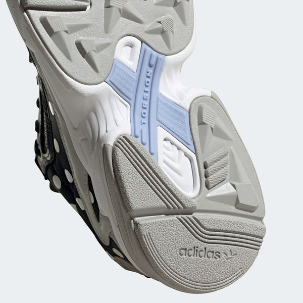 Cholewka z różnych materiałów i wyraziste, falujące kształty czynią ten model niezwykle estetycznym i unikalnym. Wierzch buta łączy oddychalność siateczki z trwałością i elegancją materiału syntetycznego i zamszowych nakładek. Wkomponowany w but element Torsion X-bar stanowi ukłon w kierunku tradycji biegowej z lat 90-tych. Uczucie miękkości i trwałości to zasługa tekstylnej wyściółki oraz komfortowej, nieco szerszej konstrukcji butów.