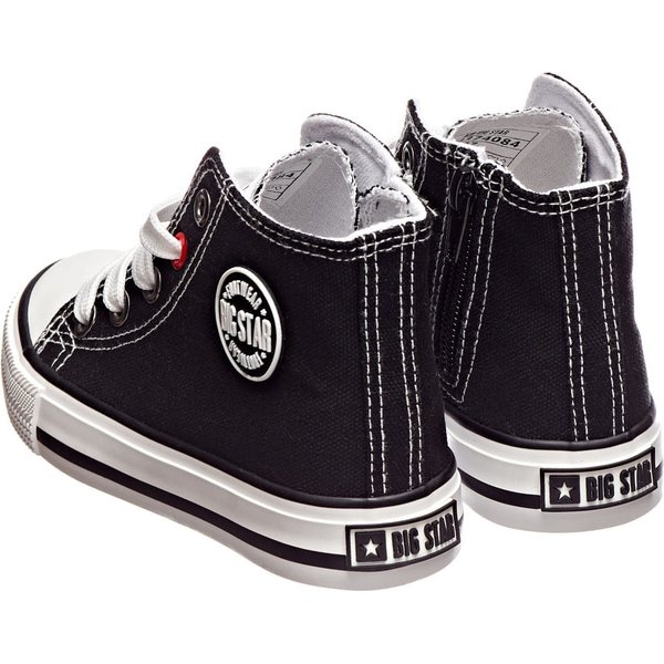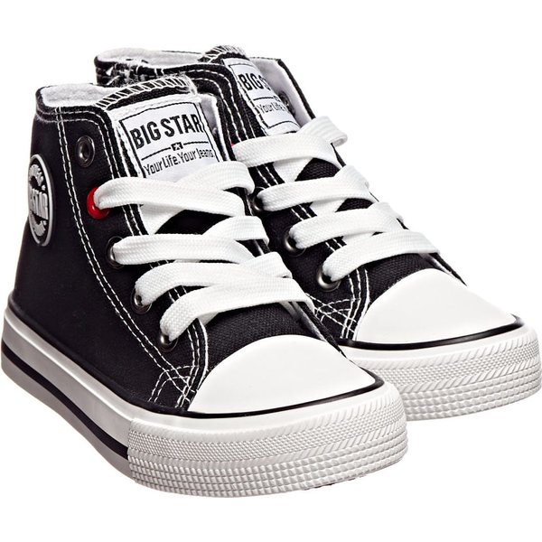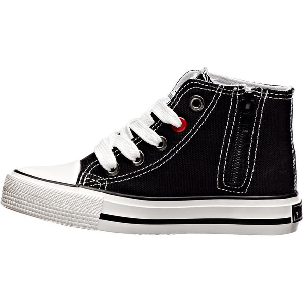 Niesamowicie lekka konstrukcja jest niemal niewyczuwalna na nogach. Nieco wyższa cholewka delikatnie otula nogę, stabilizuje i sprawia, że but pewnie się trzyma i nie spada. Gumowa, płaska podeszwa wspiera naturalny ruch i pozwala na komfortowy marsz, który nie męczy stóp. Tradycyjne wiązanie zostało uzupełnione o zapięcie z zamkiem błyskawicznym z boku, co ułatwia użytkowanie najmłodszym. Klasyczny design dobrze się prezentuje, kultowych trampek nie może zabraknąć w szafie każdego dziecka.