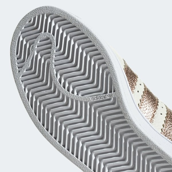 Odświeżony design butów Superstar oferuje ponadczasową kolorystykę. Klasyczna gumowa osłona palców połączona została z skórzaną cholewką, która gwarantuje uczucie miękkości i maksimum wygody. Oryginalna gumowa podeszwa to gwarancja wytrzymałości i odporności na przetarcia, natomiast wzór w jodełkę podeszwy zewnętrznej zapewni Ci optymalną przyczepność. Całość dopełniają 3 ząbkowane paski, logo Adidas na pięcie oraz szeroki i gruby język, który swoją fakturą podkreśla wyjątkowość butów Superstar!