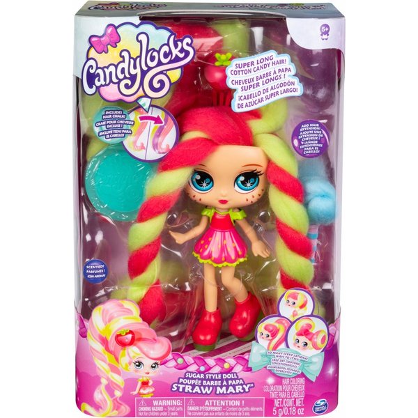 Candylocks to laleczki z niespotykanymi włosami. Ich włosy są tak kolorowe i miękkie, że wyglądają jak wata cukrowa! Zestaw ten zawiera laleczkę, która dzięki swojej sukience przypomina truskawkę. Posiada piękne zielono-rczerwone włosy z, których możesz tworzyć fryzury na milion sposobów! Warkocze, kucyki ... teraz możesz potrenować nad umiejętnościami, a ograniczać Cię będzie jedynie Twoja wyobraźnia. Pomocne w tym będą akcesoria dołączone do zestawu. Wejdź do świata fryzjerów dzięki tej ślicznej i pachnącej laleczce. Na pewno będziesz zachwycona! Jeszcze jedno... Chyba nie trzeba dodawać czym będzie pachniała ta postać? Przekonaj się sama!