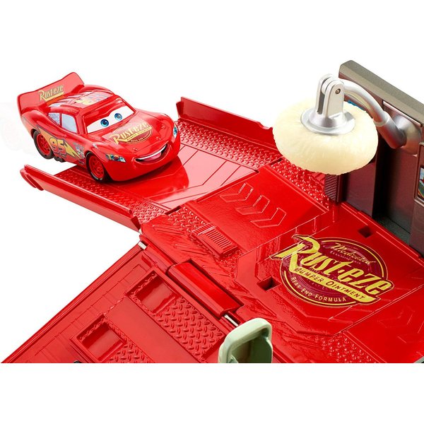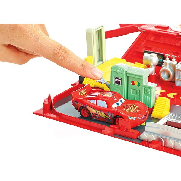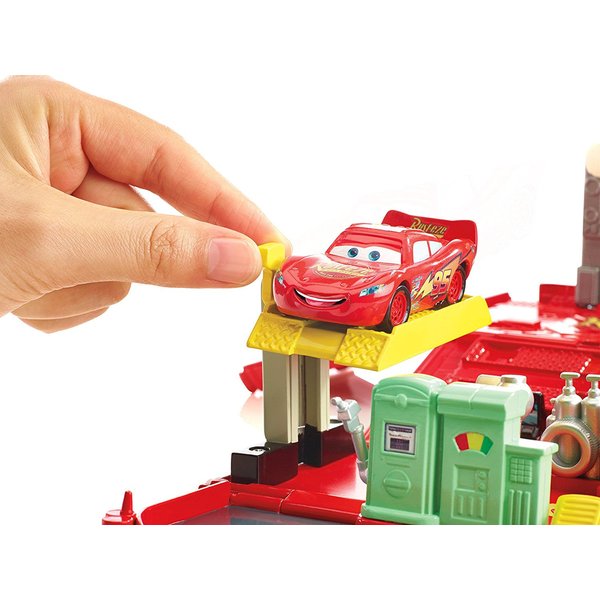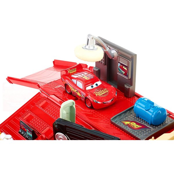 Ciężarówka może przewozić samochodziki lub zamienić się w niepowtarzalną stację naprawczą! Po szalonych wyścigach czas na odpoczynek. Zygzak może skorzystać z myjni lub dolać paliwo. Przed kolejnym wyścigiem konieczny będzie również przegląd techniczny. Dzięki stacji Zygzak na pewno wygra wyścig!