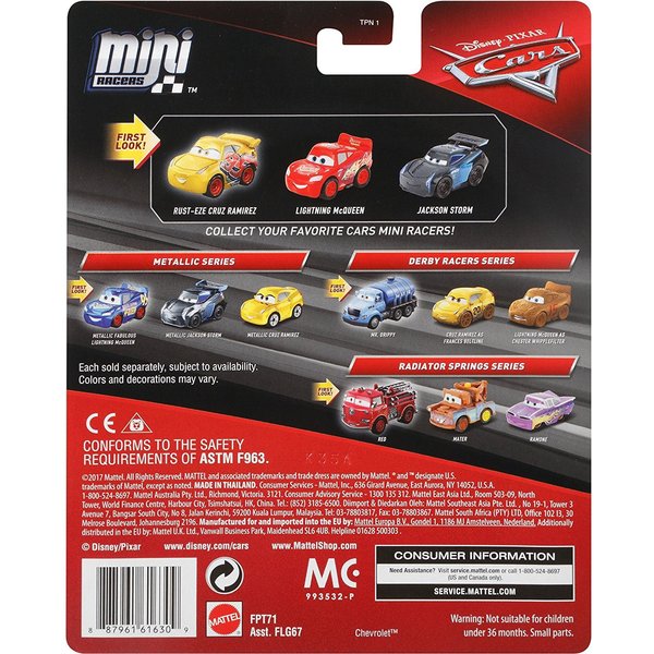 Zbierz całą kolekcję i odgrywaj sceny z filmu! Samochodziki idealnie sprawdzą się również do zabawy w garażach oraz do zestawów torów i dróg z serii Mini-Racers