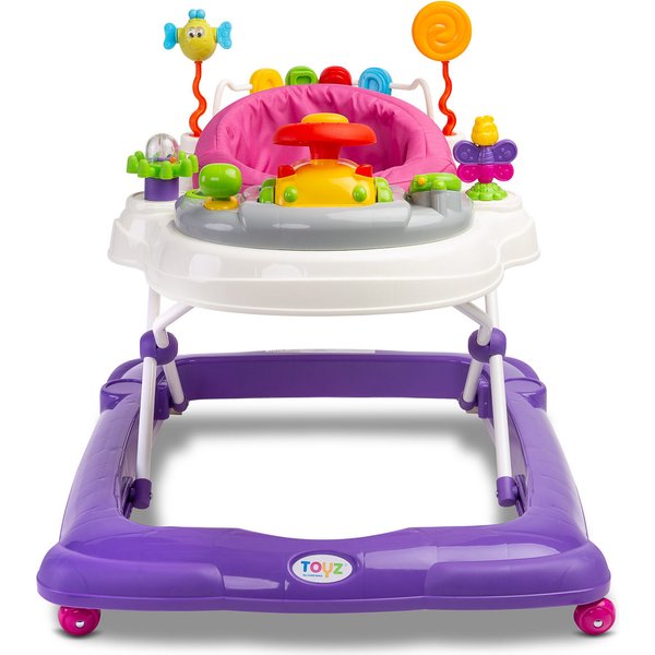 Tradycyjny chodzik wzbogacony o obrotowe siedzisko i panel pełen zabawek od Toyz by Caretero! Chodzik Stepp to świetny wybór dla maluszków, które chcą już rozpocząć naukę chodzenia. Dzięki stabilnej konstrukcji i solidnym materiałom Twoja pociecha będzie bezpiecznie pokonywać domowe trasy. Wygodne siedzisko z oparciem zapewnią prawidłową pozycję podczas jazdy. Dodatkowo można dopasować wysokość siedziska do wzrostu dziecka, by mogło wygodnie dotykać nogami podłoża.