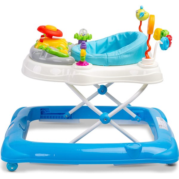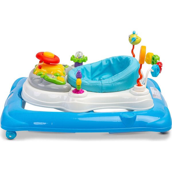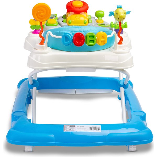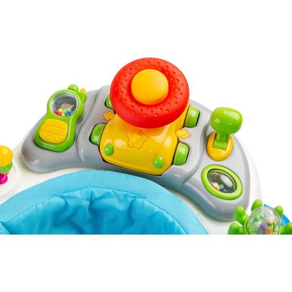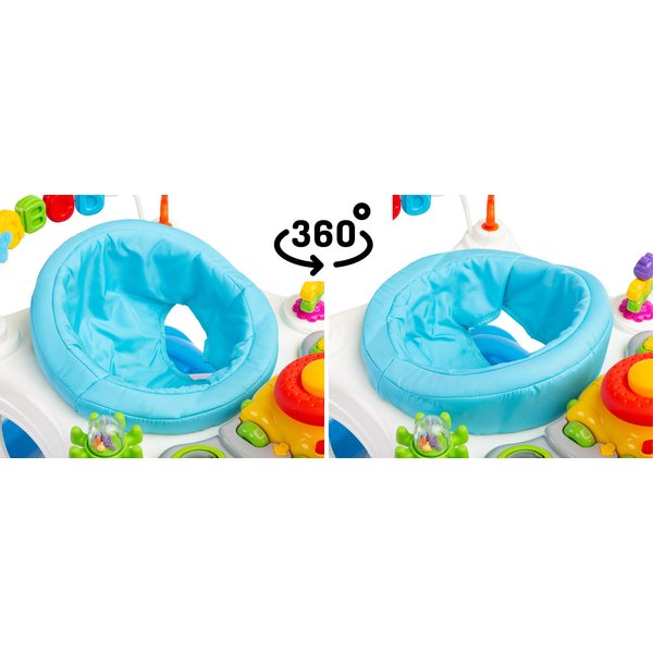 Oryginalne wzory i kolory przyciągną uwagę każdego dziecka. Gdy będzie już zmęczony chodzeniem może rozpocząć zabawę! Obrotowe siedzisko 360° pozwala swobodnie bawić się maluszkowi otaczającymi go zabawkami. Znajdzie tu mnóstwo niespodzianek: grzechotki, piszczałki, przyciski aktywujące dźwięki i światełka i wiele ruchomych elementów - zabawa nie będzie miała końca!