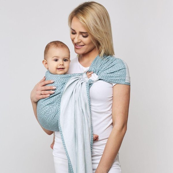 - Posiada najwyższej jakości aluminiowe kółka ułatwiające dopasowanie chusty ,