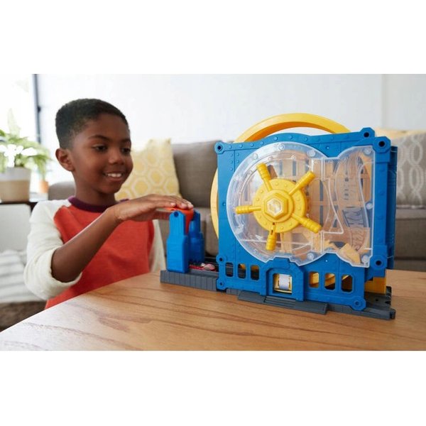 Zestaw od Hot Wheels, który przyniesie wiele wrażeń podczas zabawy. Teraz nasze pojazdy mogą wjechać do prawdziwego skarbca, który kryje monety. Zakręcone trasy dodadzą wiele radości podczas zabawy. Samochód będzie mógł sprawdzić swoje opony zanim wyruszy w kolejną, długa podróż. Będzie to doskonały pomysł na prezent dla małego miłośnika tej serii. Komplet można połączyć z innymi zestawami tej samej marki, co daje nam nieograniczone możliwości. Całość wykonana jest z wytrzymałych materiałów, co gwarantuje jego wytrzymałość.