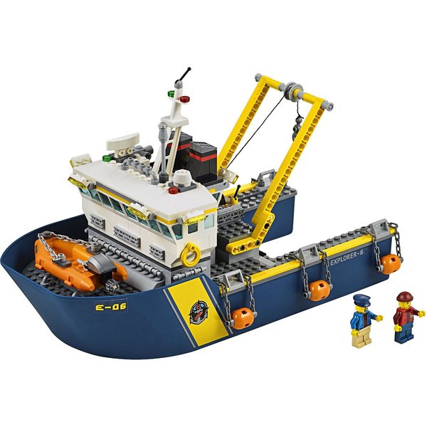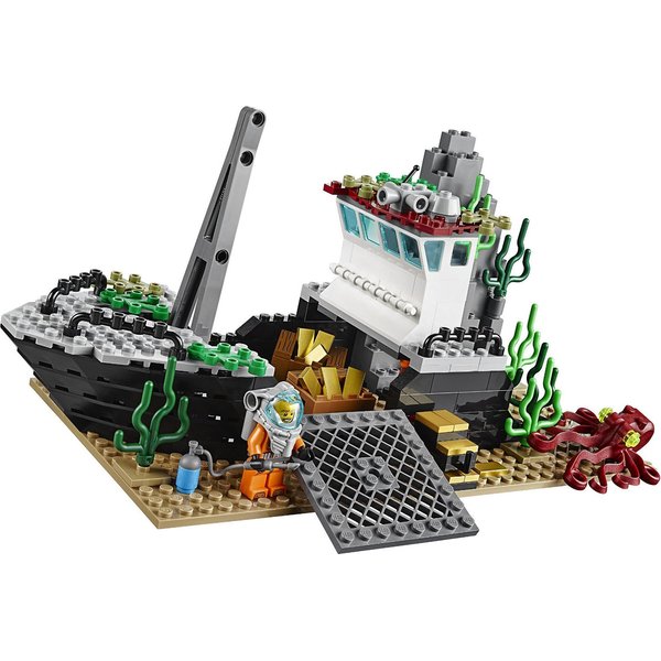 Zestaw Statek do badań głębinowych to wspaniała zabawa dla małego budowniczego. Zbuduj ogromny statek badawczy i ruszaj na poszukiwanie zaginionego skarbu. Wpuść do oceanu łódź podwodną oraz skuter głębinowy, które zbadają, co kryje się na dnie. Gdy podwodne maszyny napotkają wrak statku, opuść nurka w specjalnej klatce przeciw rekinom do szczątek wraku. Jeśli nurek odkryje skarb przybądź mu z pomocą razem ze zdalnie sterowanym robotem, który pomoże wyłowić znalezisko na powierzchnię. Uważaj na niebezpieczeństwa, które kryją się w głębi oceanu - rekiny oraz ogromną ośmiornicę! Sprawdź czy uda ci się wyłowić cały skarb!