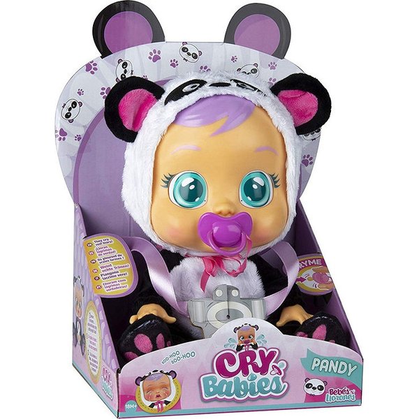 Mała laleczka w uroczym przebraniu pandy, która potrzebuje dużo czułości. Po wyciągnięciu smoczka, bobas zapłacze prawdziwymi łzami i będzie wydawał odgłosy. Jednak, aby to zrobił należy wcześniej wlać wodę do odpowiedniego pojemnika, który znajduje się z tyłu głowy. Nie pozwól laleczce na długi płacz! Przytul ją, daj smoczka, a zobaczysz jak szybko przyniesie to efekt.