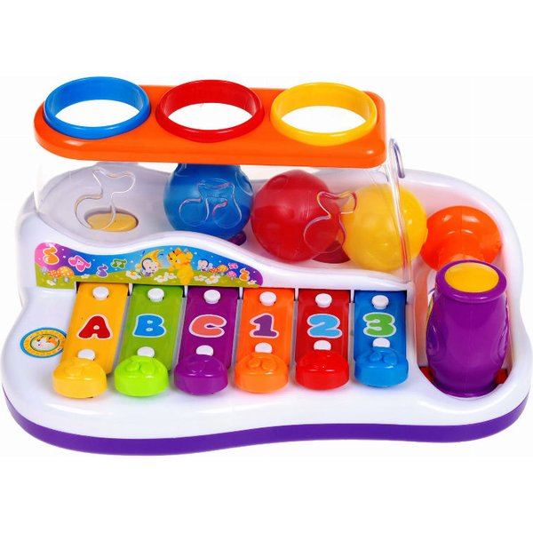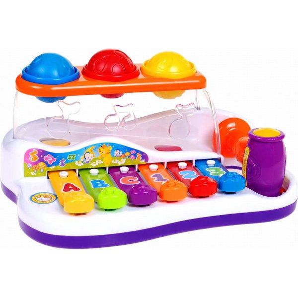 Cymbałki wielofunkcyjne, które oprócz zmysłu słuchu będą rozwijały koordynację oraz zdolności manualne. Oprócz tego maluch będzie miał okazję poznać kolory i kształty i nauczyć się rozpoznawania ich. Wykonane z wysokiej jakości materiału, są trwałe i odporne na uderzenia młotkiem dołączonym do zestawu. W komplecie są również 3 piłeczki, które dziecko może dopasować do odpowiedniego otworu i uderzać w nie tak, aby wyskoczyły z drugiej strony.