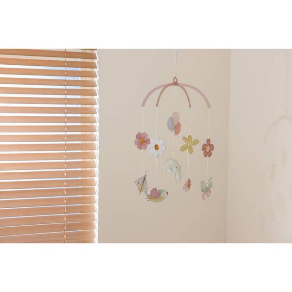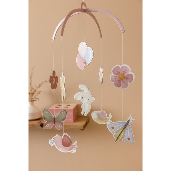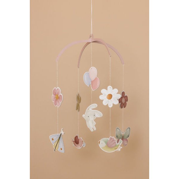 Dekoracyjny mobil kartonowy Flowers & Butterflies FSC marki Little Dutch to oryginalny sposób na dekorację pokoiku każdej dziewczynki uwielbiającej zwierzątka i kwiatki.