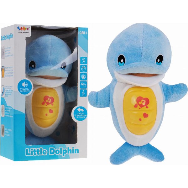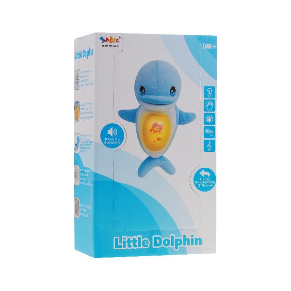 Delfinek pozytywka, która jest wykonana z mięciutkich materiałów. Bardzo przyjemna w dotyku sprawi, że maluch chętnie będzie się do niego przytulał i nie będzie mógł się z nim rozstać. Wyposażony został w kołysankę, która pomoże dziecku się wyciszyć i zrelaksować przed snem. Regulacja głośności pozwoli ją dostosować do wymagań. Dodatkowo rozjaśni pokój delikatnym blaskiem lampki, która doda poczucia bezpieczeństwa. W razie zabrudzeń pluszaka można bez problemu wyprać w niskiej temperaturze jednak trzeba pamiętać, aby wcześniej wyciągnąć mechanizm.