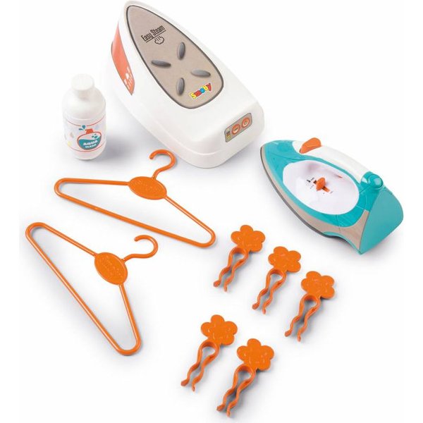 Każdy maluch chce pomóc mamie w porządkach i potrzebuje profesjonalnego sprzętu. W zestawie maluszek znajdzie deskę do prasowania ze stacją parową, żelazko, wieszaki, klamerki oraz spryskiwacz do ubrań. Dodatkowo interaktywne żelazko posiada światełko i wydaje syczący dźwięk, charakterystyczny przy wypuszczaniu pary - ale frajda!