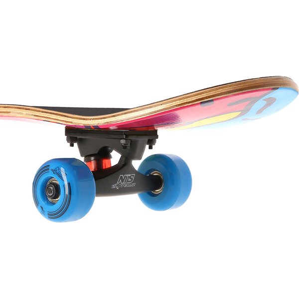 Rozwiniesz na niej niezłą prędkość, nie tracąc przy tym doskonałej przyczepności, a to wszystko za sprawą kółek o dużej twardości. Dzięki solidnym łożyskom ABEC 7 wykonanych z mocnego i lekkiego carbonu jazda będzie szybka i niezawodna. Kolejny istotny element deskorolki, czyli blat, został wykonany z 9-warstwowej sklejki, która jest obustronnie profilowana oraz pokryta od strony użytkowej antypoślizgową warstwą. Umieszczona na zewnętrznej stronie kolorowa grafika odzwierciedli Twój miejski styl i znacznie ubarwi ulice szarego miast.