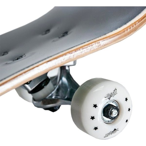 Deskorolka La Paz Allright została wykonana z mocnego decku z wysokiej jakości klonu 9cio warstwowego. Jest w stanie wytrzymać maksymalnie 100 kg więc jest to propozycja dla każdego. Łożyska ABEC 7 CARBON zapewnią optymalną dynamikę jazdy. Aluminiowe trucki heavy duty zagwarantują bezproblemową sterowność i tym samym panowanie nad deską, a sprężyste kółka umożliwią amortyzację wstrząsów.