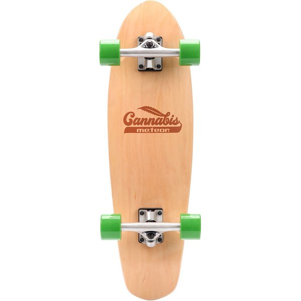 Lekka, zwinna i niewielkich rozmiarów deskorolka Cannabis marki Meteor, jest wręcz stworzona do jazdy w miejskich warunkach. Konstrukcja cruisingowa, najlepiej sprawdzi się podczas szybkiego przemieszczania się. Niewielka waga deski ułatwia przenoszenie, a wysokie i skrętne trucki umożliwiają prostą i szybką zmianę kierunku jazdy i sprawdzą się podczas trenowania tricków.