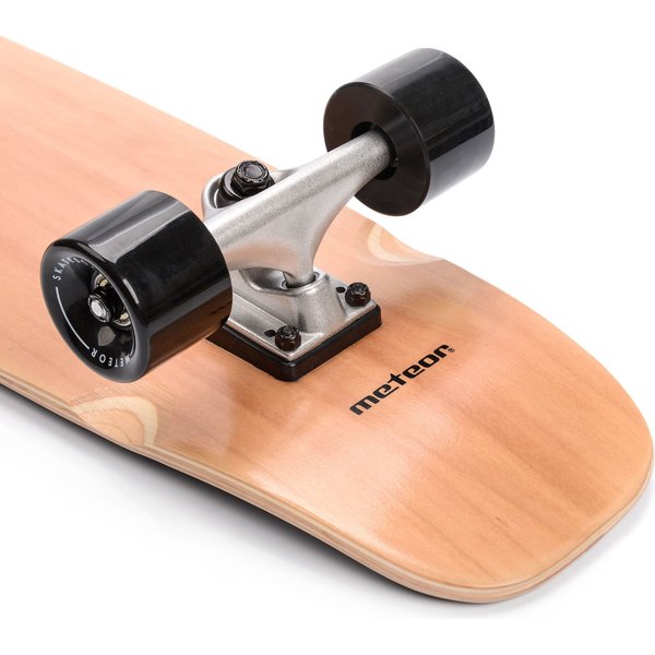 Lekka, zwinna i niewielkich rozmiarów deskorolka Maple marki Meteor, jest wręcz stworzona do jazdy w miejskich warunkach. Konstrukcja cruisingowa, najlepiej sprawdzi się podczas szybkiego przemieszczania się. Niewielka waga deski ułatwia przenoszenie, a wysokie i skrętne trucki umożliwiają prostą i szybką zmianę kierunku jazdy i sprawdzą się podczas trenowania tricków.