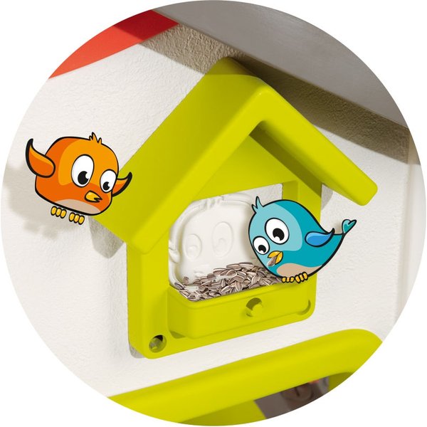 Domek ogrodowy od Smoby to z pewnością jedna z tych zabawek, która zachwyci dzieci. Został wyposażony w otwierane okiennice i kwadratowe okienko. Oprócz tego maluch będzie mógł karmić ptaszki dzięki dołączonemu karmnikowi. Wszystkie elementy zostały dopracowane w każdym calu! Ta dbałość o szczegóły sprawia, że domek wygląda jak prawdziwy! Trwałe materiały z których zostały wykonane z systemem anty-UV zapewnią ochronę podczas upalnych, słonecznych dni.