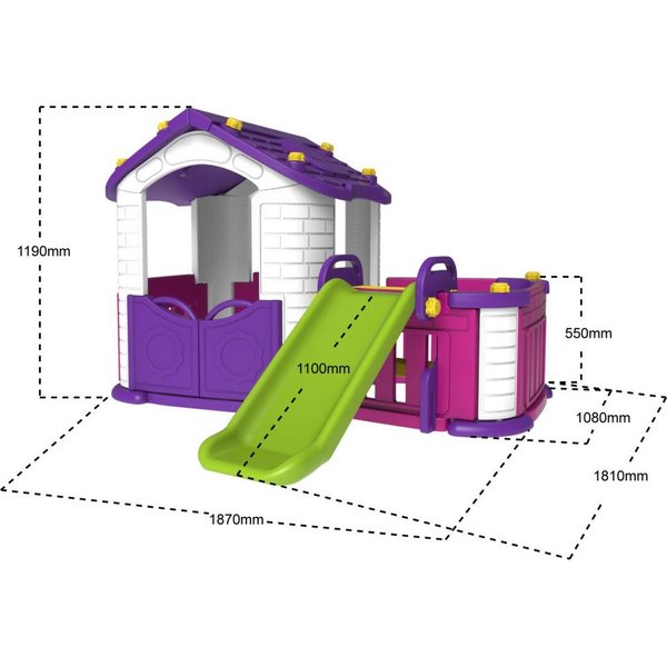 Domek ogrodowy ze zjeżdżalnią i ogródkiem od Ramiz z pewnością się przyda do ogrodowych szaleństw dzieci. Każdy maluch chciałby mieć swoje miejsce do zabaw, a domek ten pozwoli spełnić najskrytsze marzenia. Dzięki dużej przestrzeni mały właściciel posesji będzie mógł swobodnie się bawić, a nawet zaprosić gości. Dołączona zjeżdżalnia z pewnością uprzyjemni zabawę. Posiada duże elementy składowe co zdecydowanie ułatwia montaż.