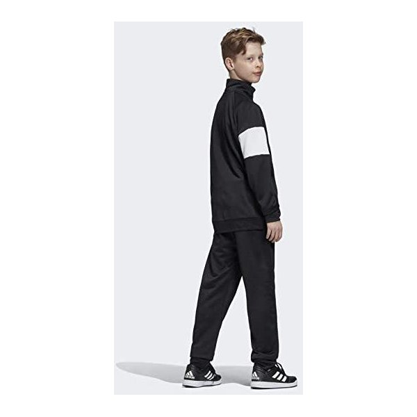 Dres składa się z bluzy o regularnym kroju i dopasowanych spodni, które wykonane zostały w całości z poliestru, dzięki czemu komplet jest lekki i wytrzymały. Dodatkowo świetnie dopasowuje się do sylwetki dziecka i zapewnia pełną swobodę ruchów, co znacznie wpływa na komfort użytkowania i wygodę. Bluza zawiera wysoki kołnierz, który skutecznie ochroni szyję przed wiatrem. Dodatkowo wyposażona została w suwak na całej długości, który ułatwia szybkie zakładanie i zdejmowanie. Elastyczne mankiety w bluzie jak i spodniach pozwalają na jeszcze dokładniejsze dopasowanie do ciała. Spodnie posiadają również elastyczną regulowaną talię, dzięki czemu można indywidualnie dopasować je do własnych potrzeb. Boczne kieszenie bluzy i spodni pozwalają na przechowanie drobnych elementów lub ogrzanie dłoni w chłodniejsze dni i tym samym poprawiają funkcjonalność całego stroju.