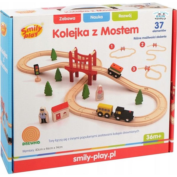 Drewniana kolejka z mostem i akcesoriami Smily Play