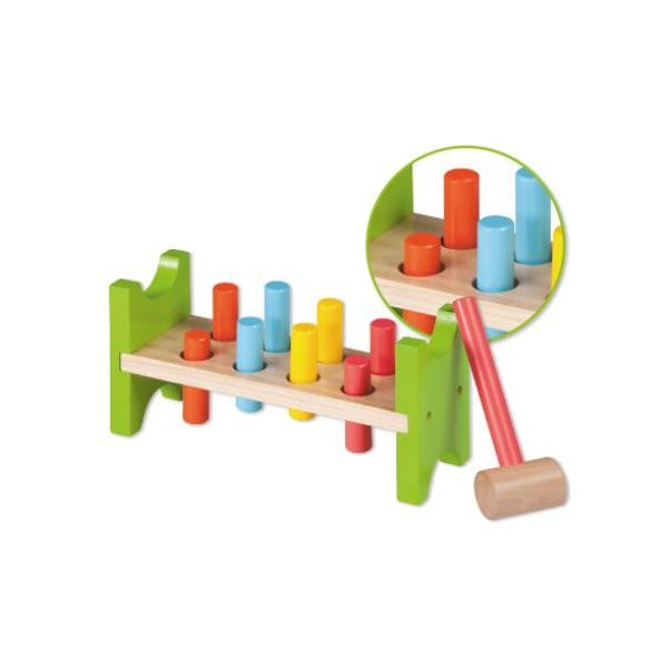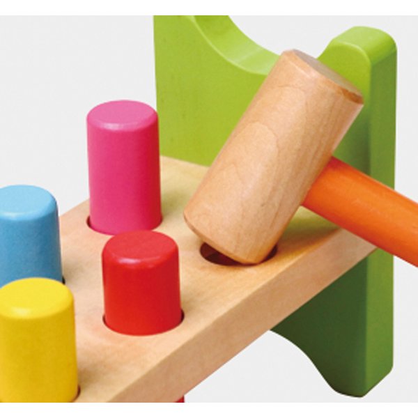 Doskonalenie zręczności, małej motoryki i przewidywanie konsekwencji własnych ruchów będzie teraz możliwe w trakcie zabawy w przybijanie dziecięcych “gwoździ”. Produkt został wykonany z certyfikowanego drewna wysokiej jakości, pomalowanego nietoksyczna farba i jest w pełni bezpieczny dla dzieci.