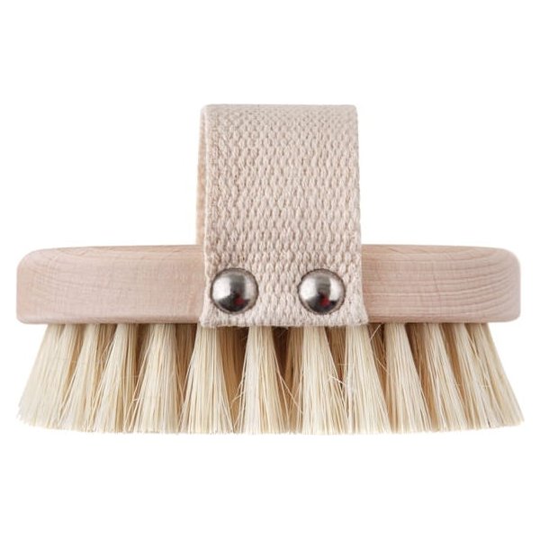Wykonana z dużą precyzją i dbałością o szczegóły szczotka bukowa z włosiem pochodzącym z agawy (tampico) posiada elipsowaty kształt, ułatwiający trzymanie i wykonanie masażu. Bawełniany pas i eleganckie przypinki zapobiegną ślizganiu się dłoni w czasie wykonywania przyjemnego i odprężającego masażu.