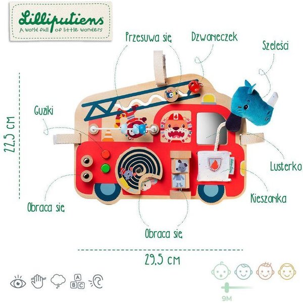 Drewniana tablica manipulacyjna Wóz strażacki Nosorożec Marius 9m+ Lilliputiens