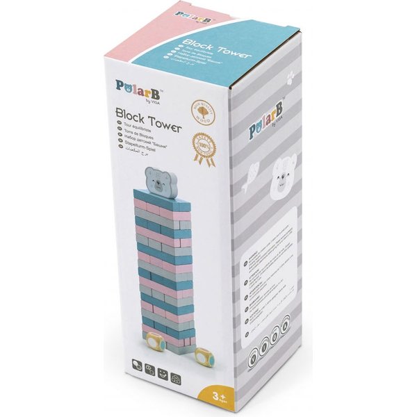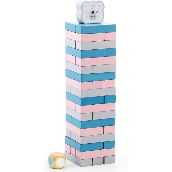 Jenga to znana gra dla całej rodziny. Tym razem od Viga w pięknych, delikatnych barwach. Gra polega na układaniu co raz wyższej wieży za pomocą drewnianych klocków. Cegiełki należy wyciągać za pomocą jednej ręki, tak by nie zburzyć budowli. Wygrywa ten, kto jako ostatni dołoży klocek, a wieża pozostanie nie naruszona, a ten kto ją przewróci - przegrywa. Twórz niesamowite budowle i sprawdź kto zostanie mistrzem Jengi. Taka zabawa nie tylko rozwija zdolności manualne, ćwiczy zręczność i koncentrację, ale również gwarantuje świetną zabawę dla całej rodziny. Jednak klocki te nie służą tylko do gry! Maluch może z nich zbudować domek, zamek czy inne rzeczy. Ograniczać go będzie tylko wyobraźnia. Wykonane z drewna są w pełni bezpieczne.