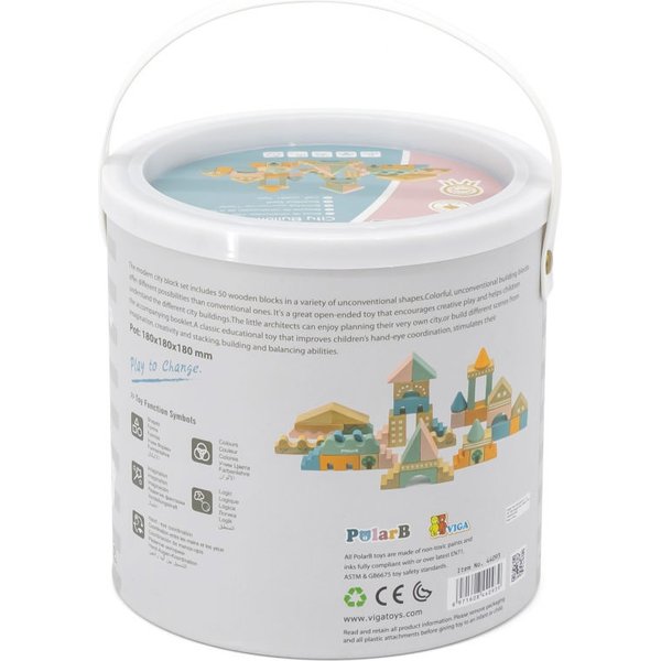 Drewnianych klocki Bloki Miejskie 50 el. Montessori PolarB Viga