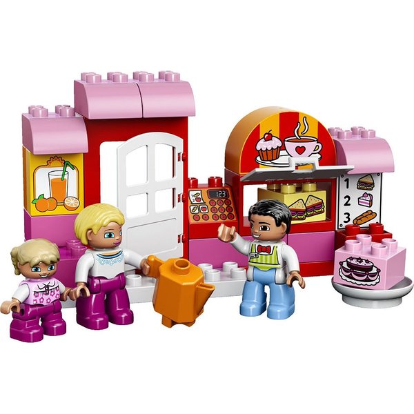 Zestaw Kawiarenka to wspaniała zabawa dla małego budowniczego. Zbuduj kolorową kawiarenkę, do której z chęcią będą przychodzić wszyscy mieszkańcy. Każdy znajdzie tu dla siebie swój ulubiony smakołyk: tosty, ciasto lub świeżo wypieczony chlebek. Zaproś do kawiarni przyjaciela na wspólne spędzenie czasu lub wstąp na szybkie zakupy.